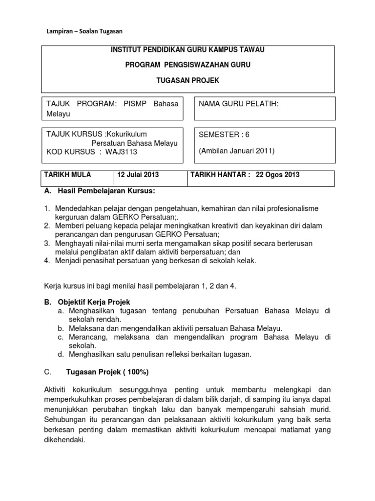Tugasan Projek Persatuan Bahasa Melayu Pdf